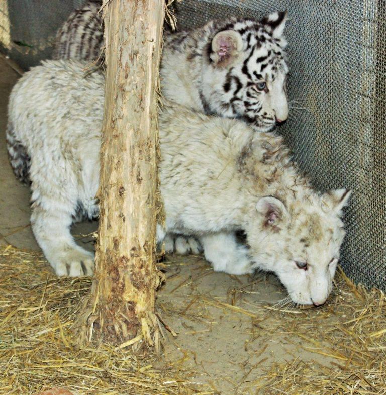 A két kölyök közül az egyik albínó, amiből mindössze ötven él a világon.